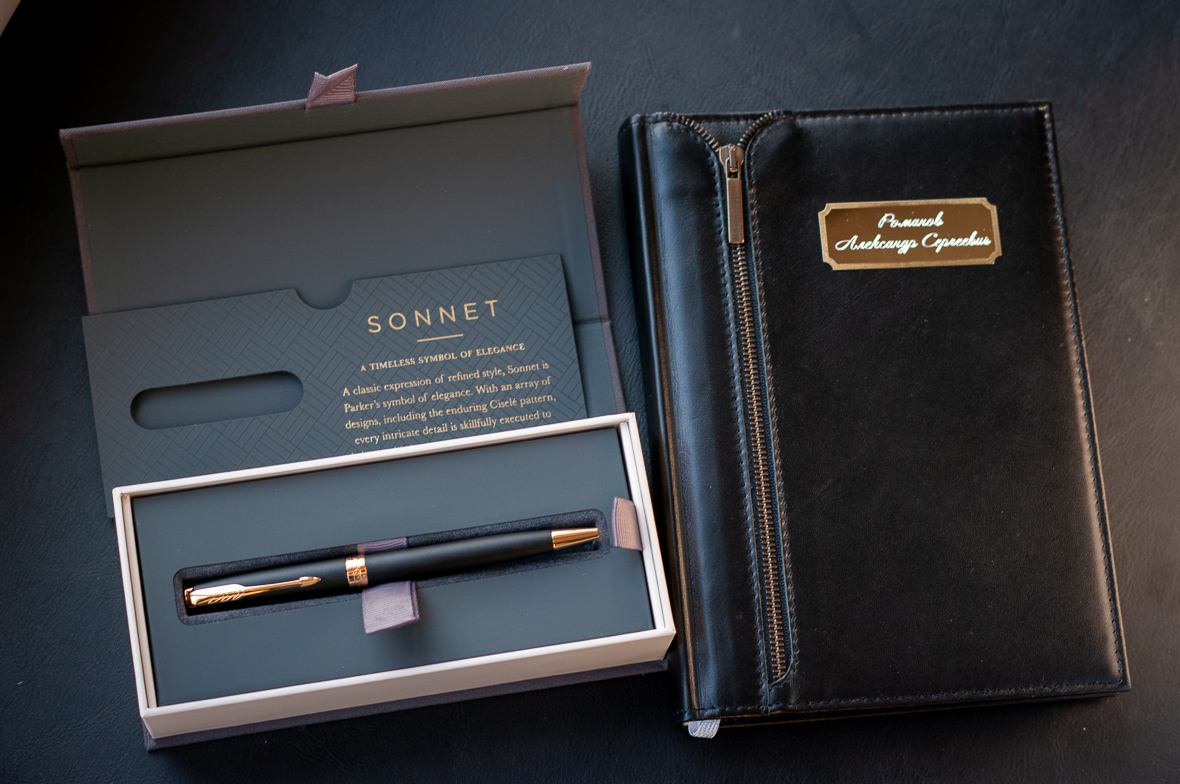 Подарочный набор VIP Ежедневник и ручка Parker Sonnet Matte Black GT от официального дилера Parker в Рязани. Вы можете дополнительно заказать гравировку, которая подчеркнет Вашу оригинальность и придаст памятность статусному подарку. Все ручки Паркер поставляются в фирменном футляре.