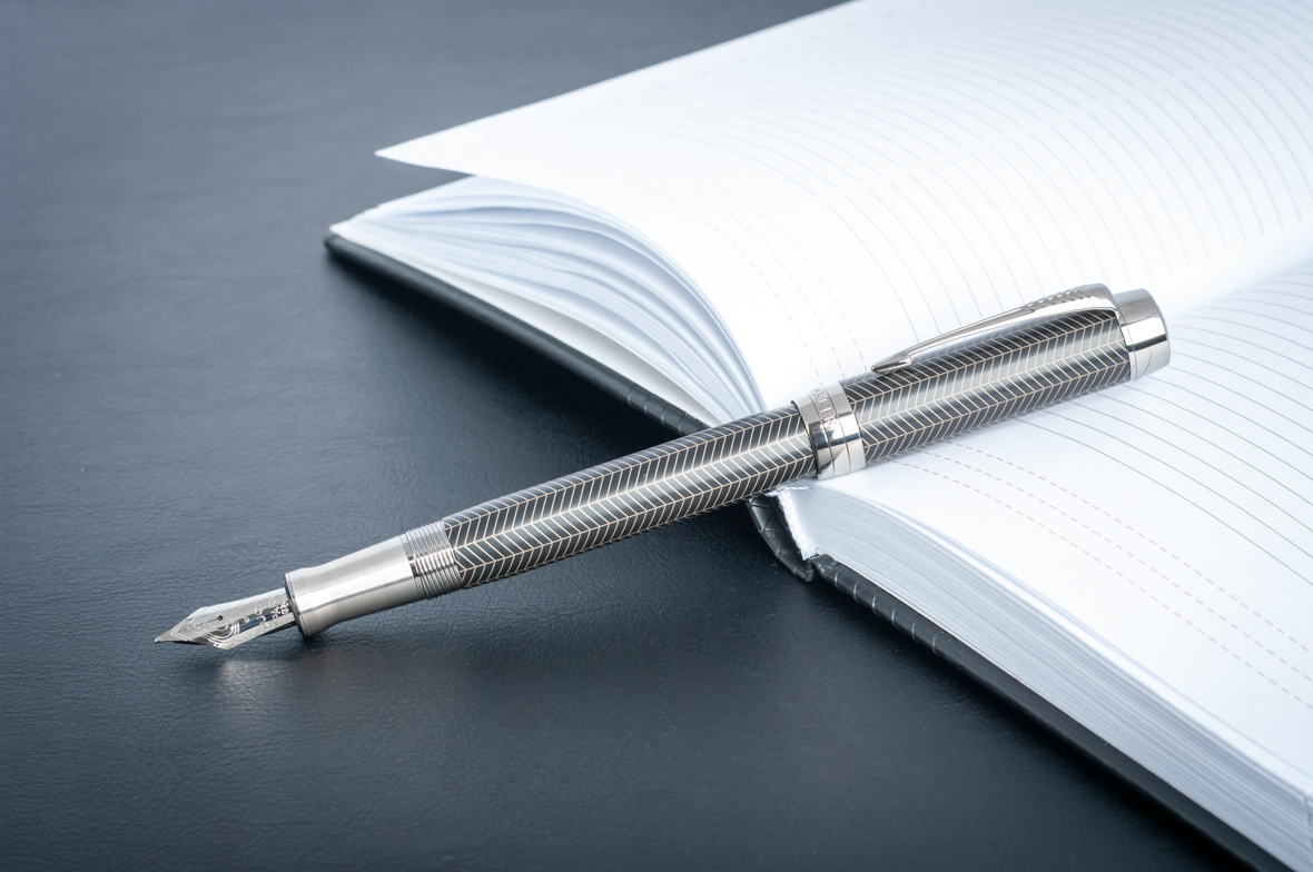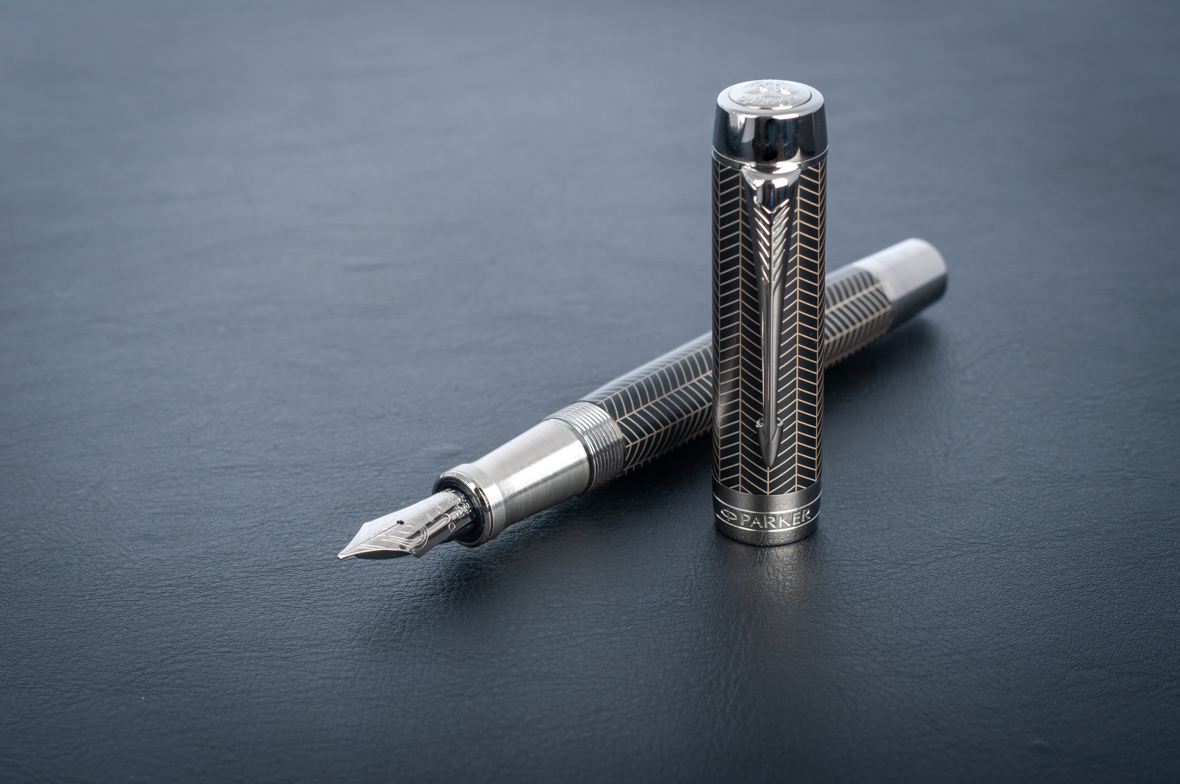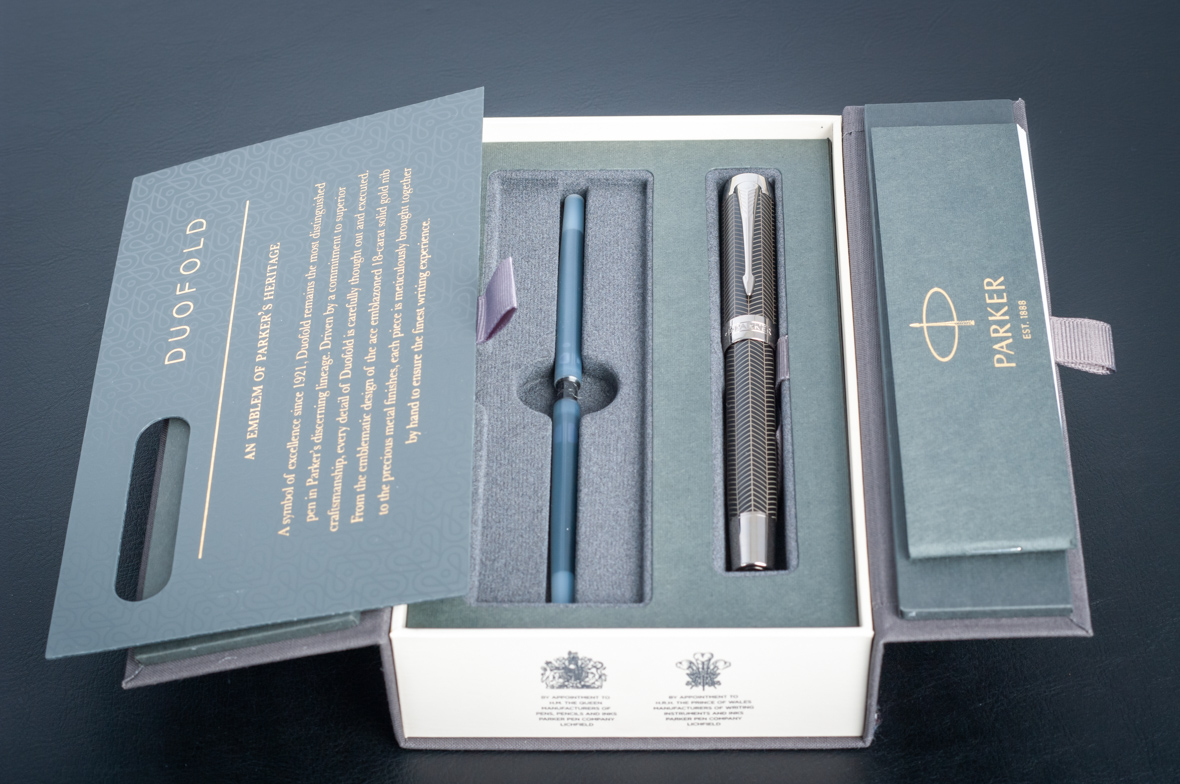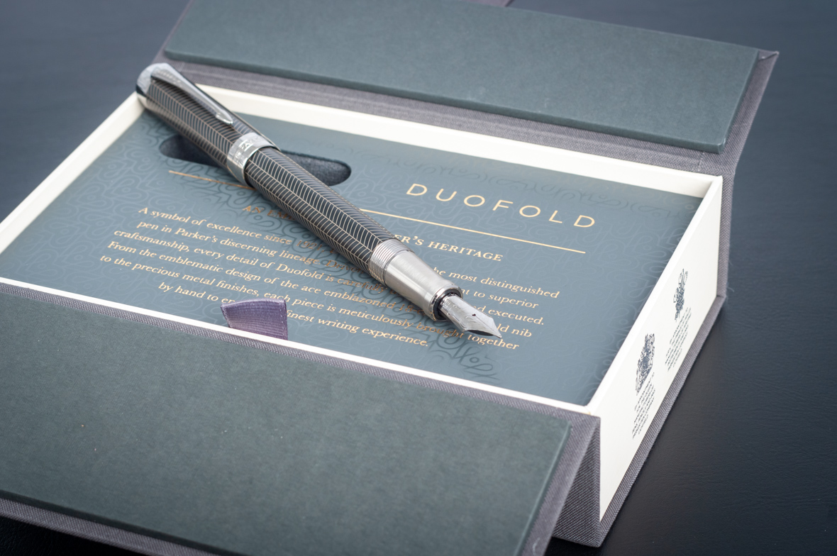Перьевая ручка Parker Duofold Prestige Centennial Black Chevron CT от официального дилера Parker в Рязани. Вы можете дополнительно заказать гравировку, которая подчеркнет Вашу оригинальность и придаст памятность статусному подарку. Все ручки Паркер поставляются в фирменном футляре.